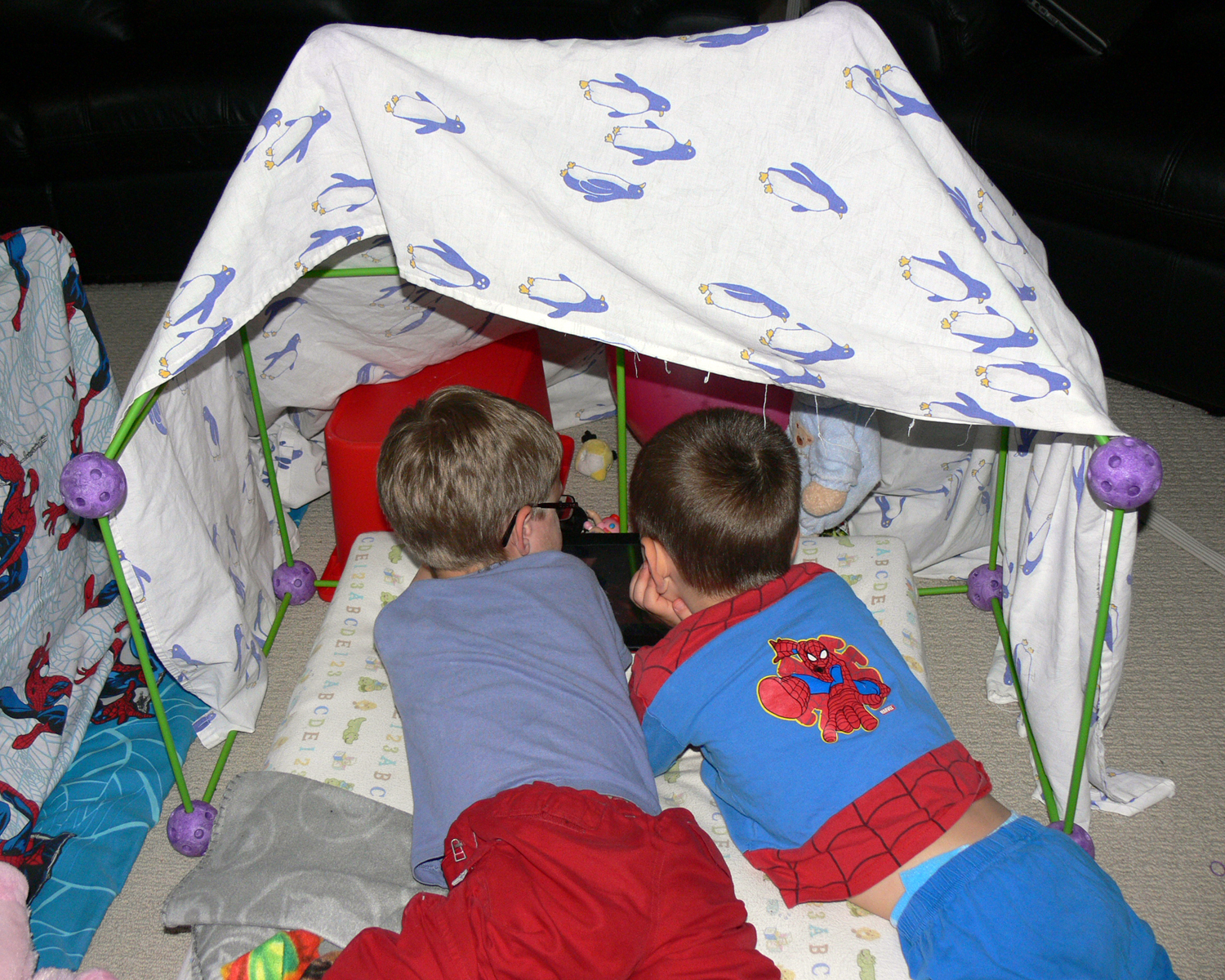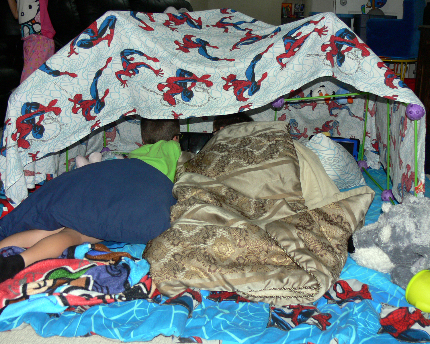 Check out our super cool bed forts we made to sleep in!